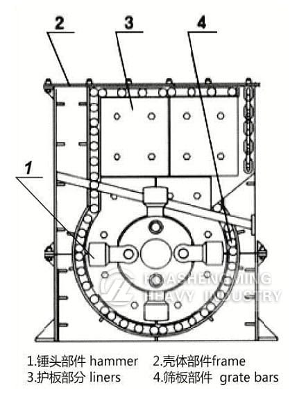 1. Heavy hammer crusher hammers do high-speed circular motion along with rotors driven by motor.