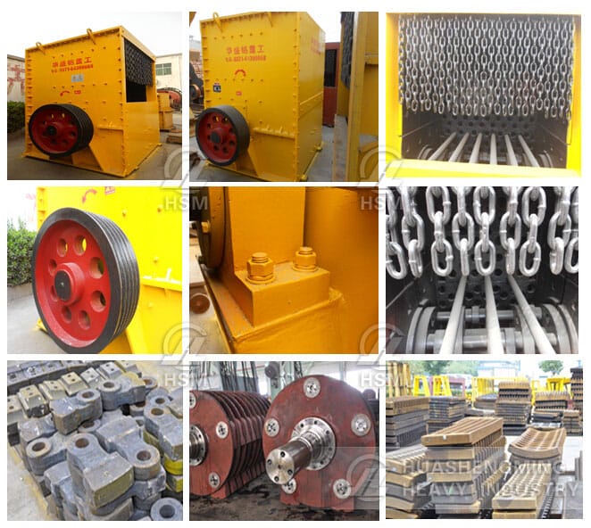 Applicable materials:Crushing medium-hard or brittle materials, big material, such as coal, cement, gypsum, alumen, brick, tile, limestone, glass etc.
