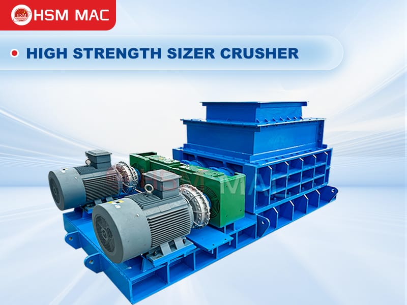 High Strength Sizer Crusher is a low speed, high torque through type screening crusher (50-80 rpm). According to the crushed material and the particle size of the crushed material, the rotational linear speed of the tooth tip of the crusher’s toothed roller can be as low as 0.8 meters/second (primary crushing) and not more than 1.8 meters/second (third/fourth stage crushing). By using low rotational speed, high torque, and different tooth shapes to achieve the final product particle size required by users, and reducing the possible over crushing to a minimum, the crushing of high hardness ores is met. Its typical structure is motor – fluid coupling – reducer – toothed roll shaft assembly and crushing chamber box.