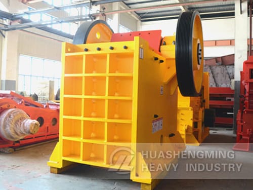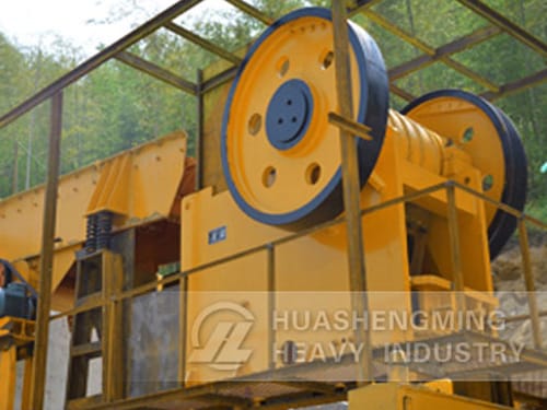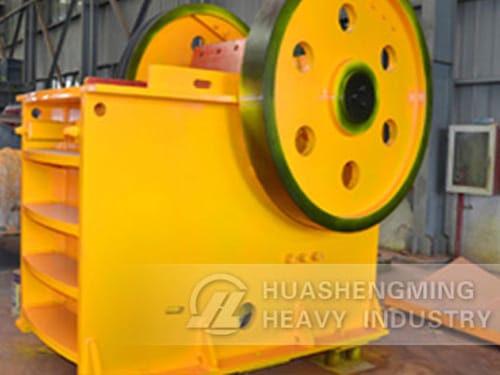 The motor drives the belts and the belt wheels, and make the movable jaw up and down by the eccentric shaft. When the movable jaw descends, the angle between the fixed jaw and the movable jaw becomes smaller, and the materials can be crushed; when the movable jaw rises, the angle between the fixed jaw and the movable jaw becomes bigger; and the movable jaw plate leaves from the fixed jaw by the function of the tension rod and the spring. And then the crushed materials are discharged from the lower outlet of the crushing cavity.