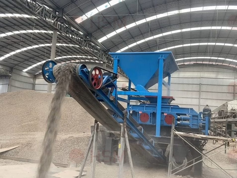 Mobile roller sand making machine uses two sets of independently driven rollers,to crush materials by squeezing and grinding shear forces generated by relative rotation. The material falls between the two rollers through the feeding port. After being squeezed and crushed by the pair of rollers, the finished product falls naturally. When encountering extremely hard or unbreakable materials, the rollers can automatically retreat by the action of the hydraulic cylinder or spring, making the gap between the two rollers The gap between the two rollers increases, and the hard or unbreakable materials naturally fall down to ensure that the machine is not damaged. The two oppositely rotating rollers can adjust the pressure of the hydraulic cylinder or spring to control the discharge granularity of the product.