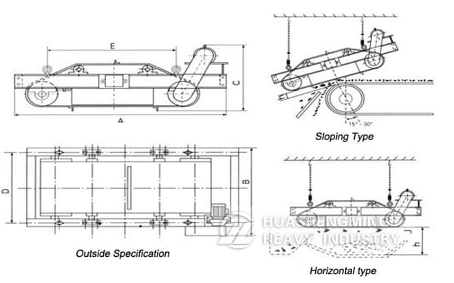 Applicable scope of Magnetic Separator: removal of iron in non-magnetic materials on belt conveyor, vibrating feeder and blanking chute.