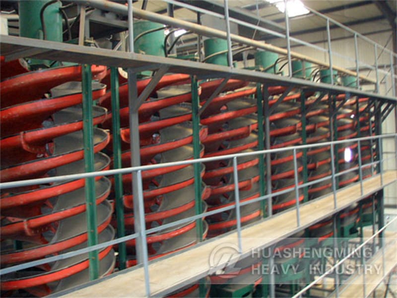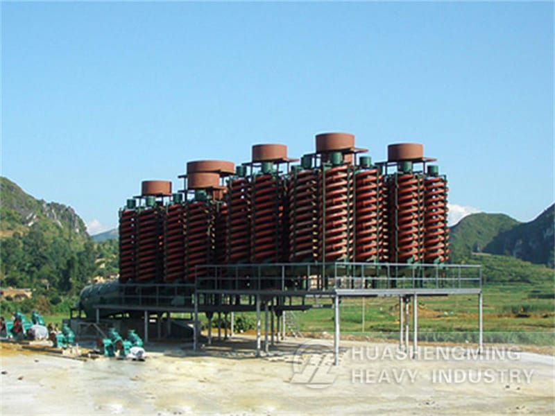 Make the spiral chute stand, adjust the vertical line, fixed the proper place with the iron structure or wood, make the ore sand deliver to two feed openings of the screw chute top, enter enough water, adjust the mash chrome, the mash flows freely from the high, produce the inertial force at the speed of the rotary, divided the sand and ore, the concentrate comes into bucket with the tract, gangue comes into the bucket with the tract to the sand pool, and pump off, complete the whole process.