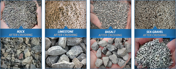 Applicable materials:River stone, mountain stone, ore tailings, aggregate chips, sand making and rock reshaping etc.