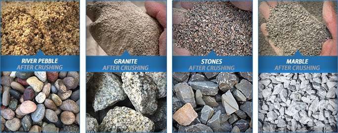 Application scope:River stone, mountain stone, ore tailings, aggregate chips, sand making and rock reshaping etc.